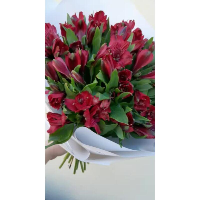 Альстромерия – 15 шт.Салал – 3 шт.Лента атласная – 2 шт.Упаковка дизайнерская – 3 шт.