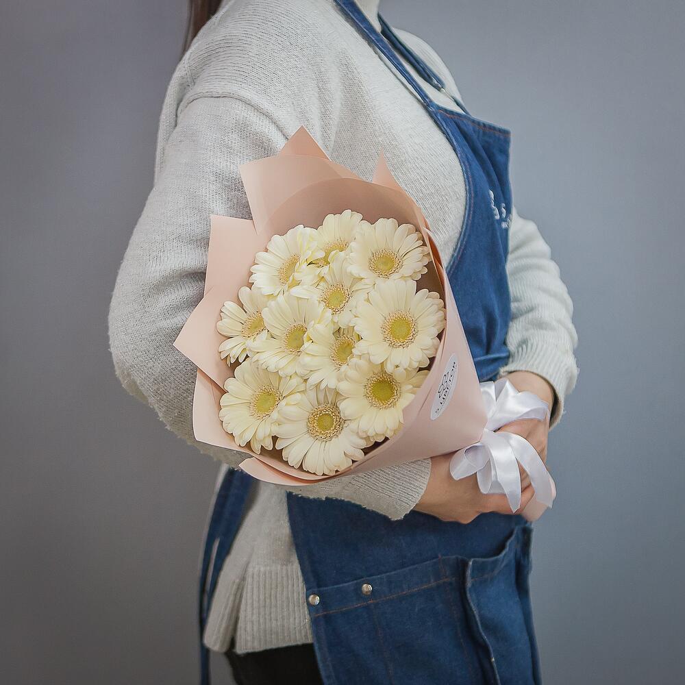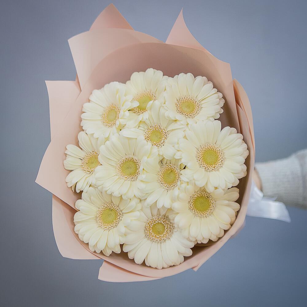Букет из 11 белых кустовых хризантем Сантини с зеленью
