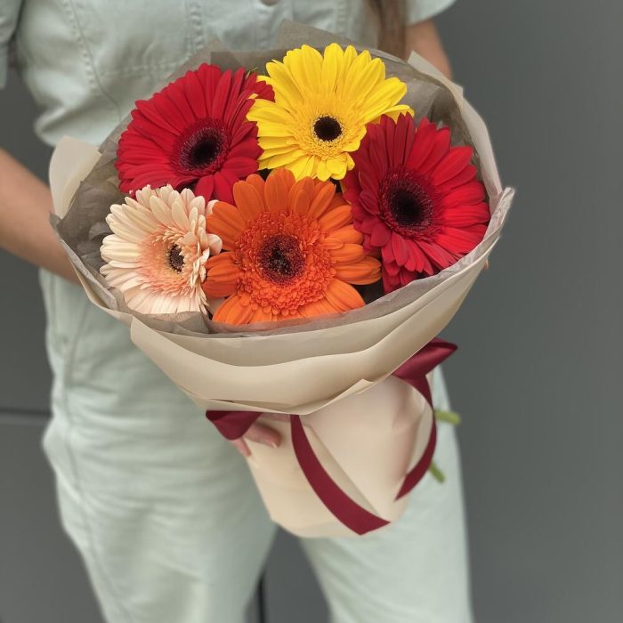 Писташ – 1 шт. Оформление – 1 шт. герберы – 5 шт.