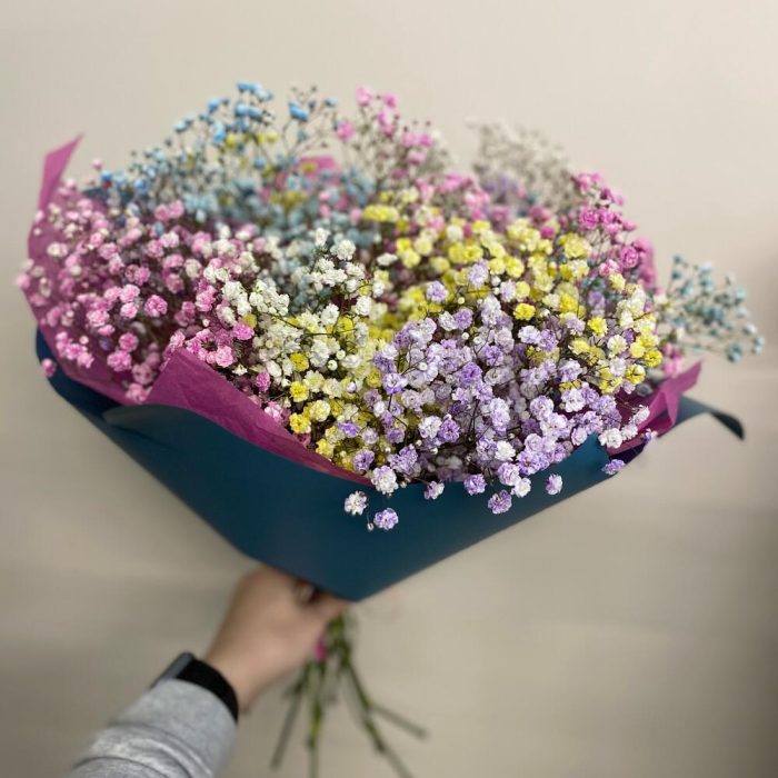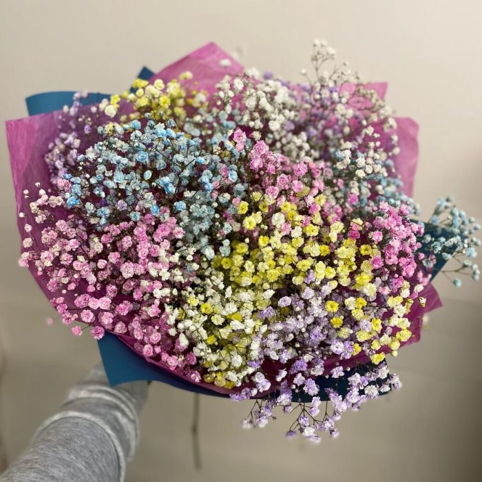 Букет с радужной гипсофилой