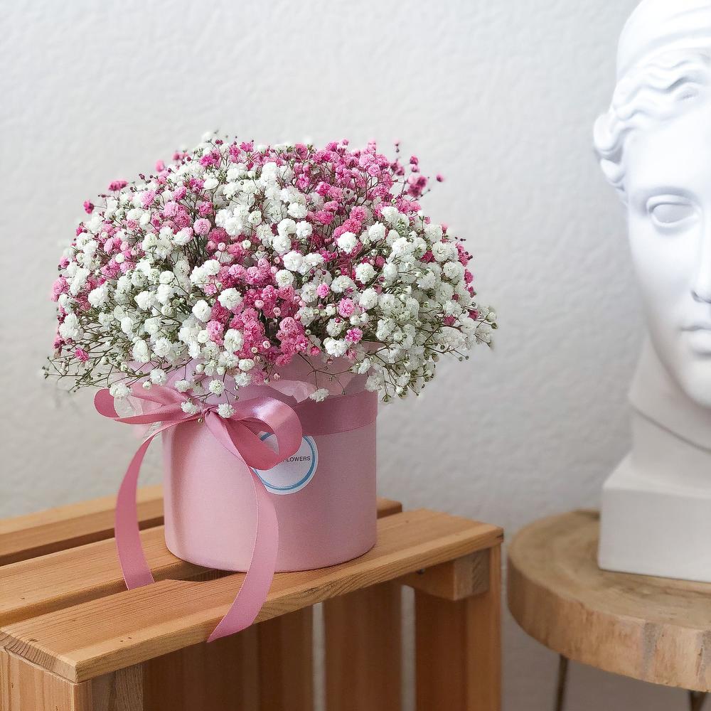 Гипсофила "Рассвет" в шляпной коробке