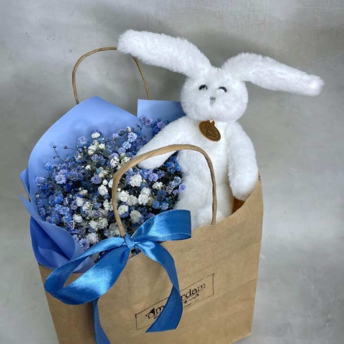 Гипсофила – 3 шт.Упаковка – 1 шт.игрушка зайчонок lapkin – 1 шт.Пакет крафт – 1 шт.