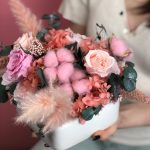 Стабилизированные цветы в шляпной коробке