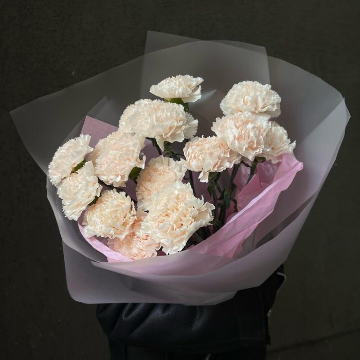 Букет 25: монобукет из кремовых гвоздик