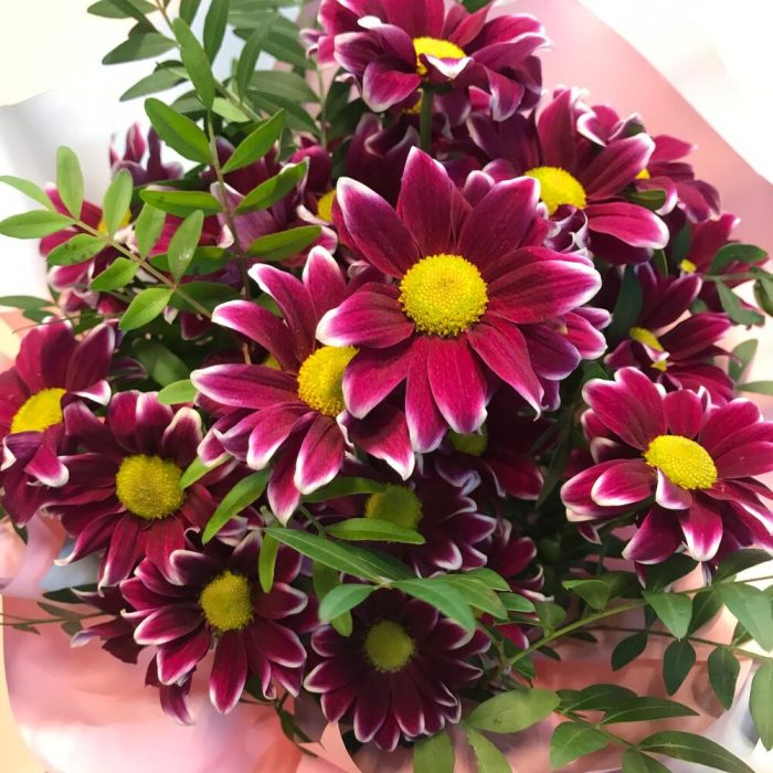 Букет из кустовых хризантем и ромашек