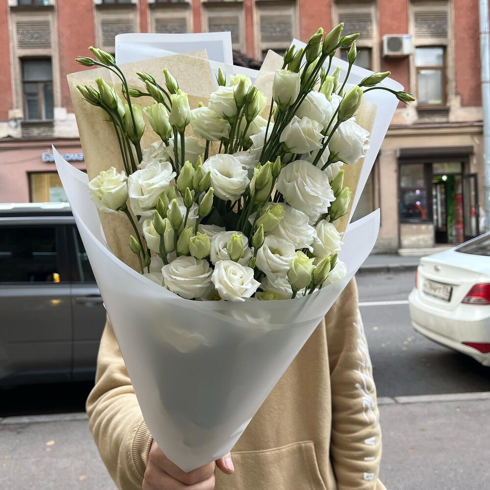 лизиантус белый эустома – 9 шт.Упаковка дизайнерская – 3 шт.