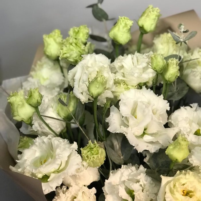 Лизиантус – 7 шт.Упаковка дизайнерская – 1 шт.эвкалипт цинерея пучок – 1 шт.