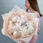 Пион – 15 шт.Лента атласная – 3 шт.Дизайнерская упаковка – 1 шт.