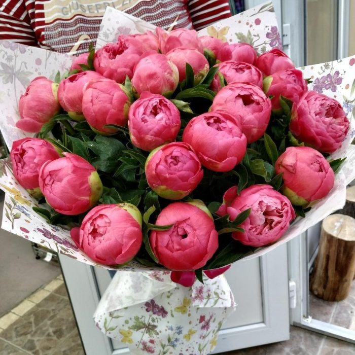 Пион Коралл Шарм (Coral Charm) – 25 шт.Лента атласная – 1 шт.Упаковка крафт – 1 шт.
