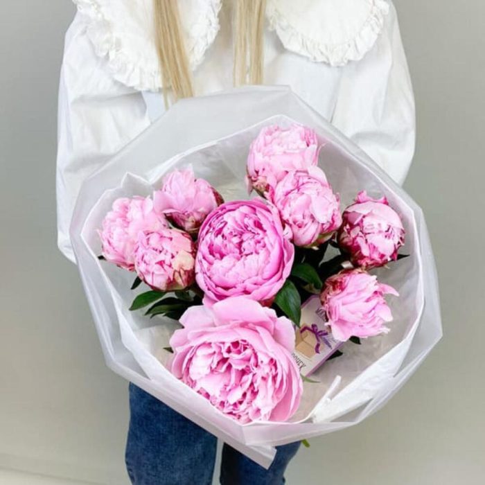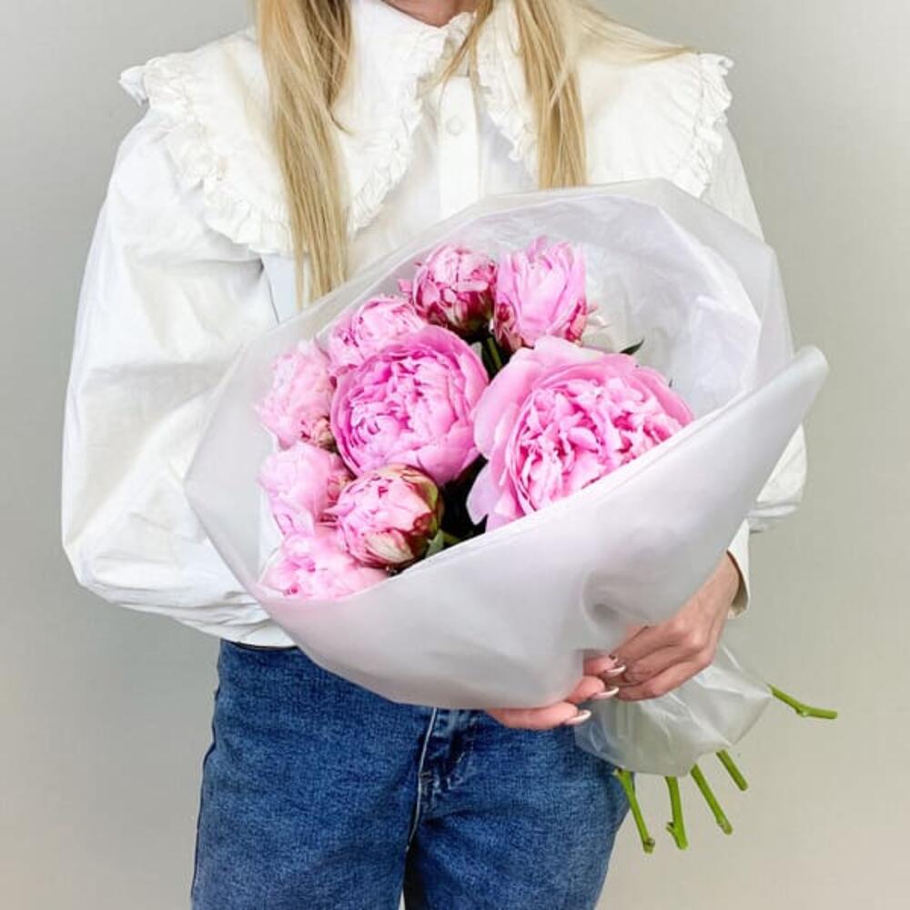 Букет с розовыми пионами Premium 9 шт