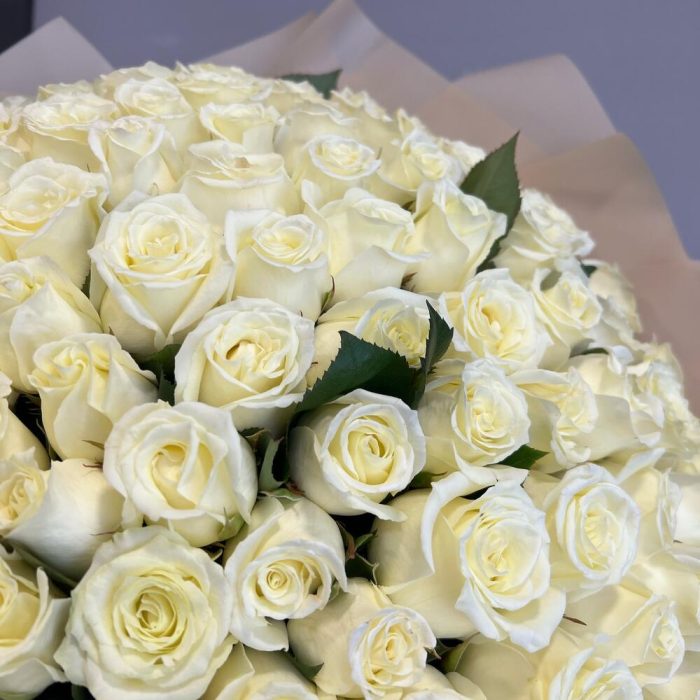 Лента атласная – 2 шт.Роза 70 см – 101 шт.Упаковка дизайнерская – 2 шт.