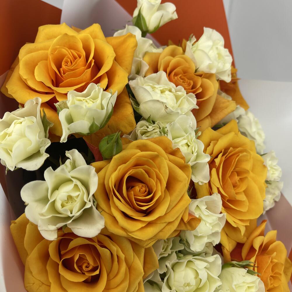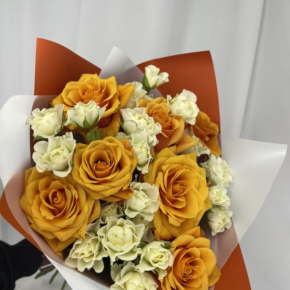 Букет из 15 кустовых и одноголовых Роз 50 см