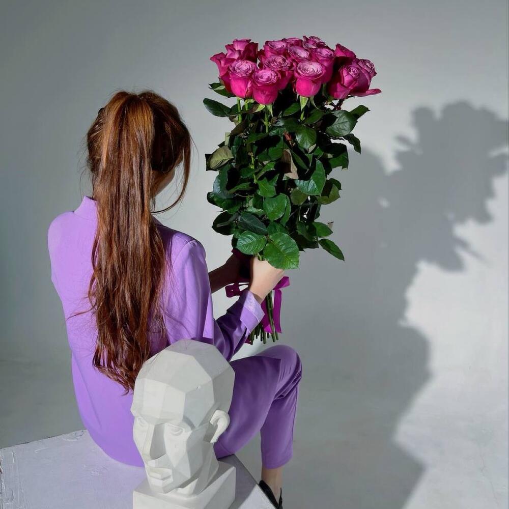 Букет из 15 высоких розовых роз