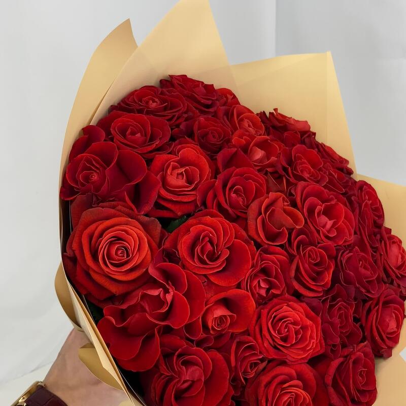 Роза – 35 шт.Упаковка – 3 шт.Атласная лента – 1 шт.