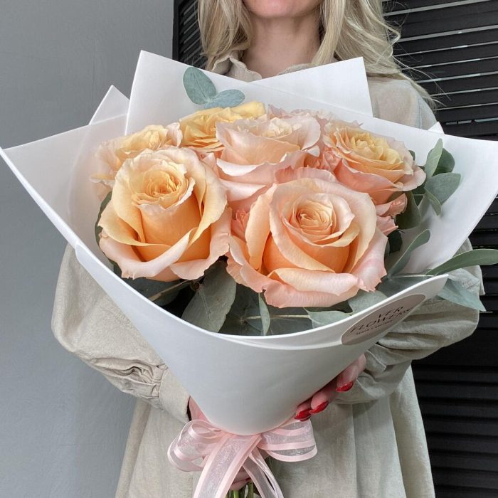 Эвкалипт – 4 шт.Упаковка дизайнерская – 1 шт.Роза шиммер – 7 шт.