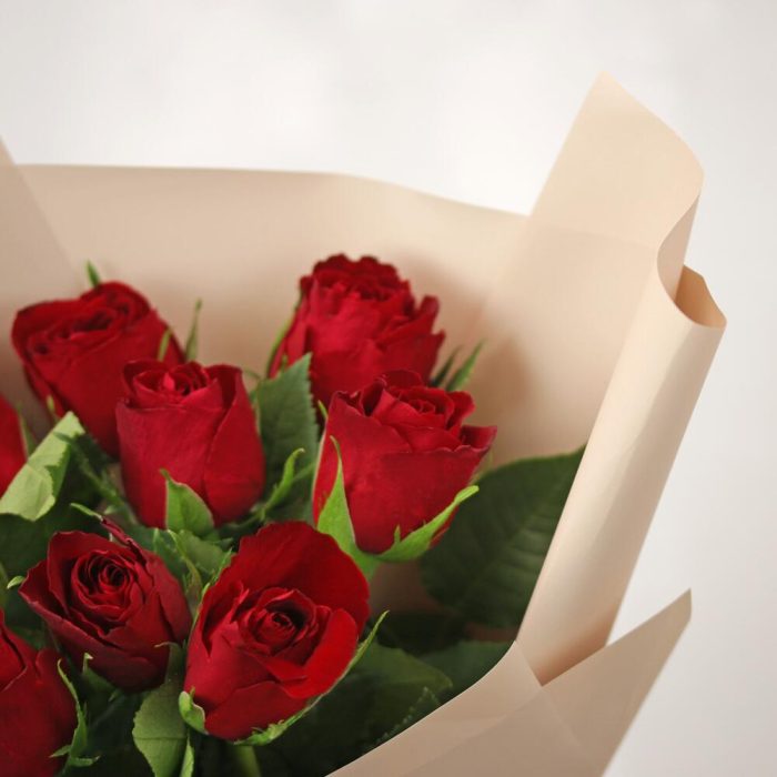 Букет из 9 красных роз 35-40 см (Кения) в стильной упаковке