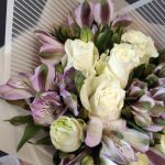 Букет из белых роз с фиолетовой альстромерией S