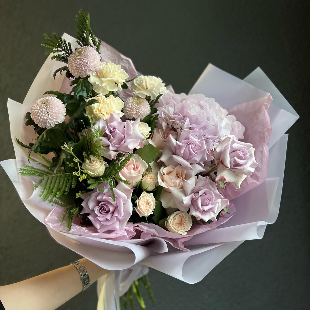 Категорий: Гвоздики, Гортензии, Кустовые розы, Розы, Хризантемы