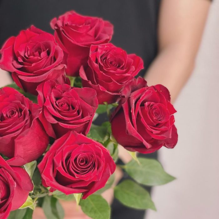 Лента атласная – 2 шт.Роза эквадор 50 см – 9 шт.