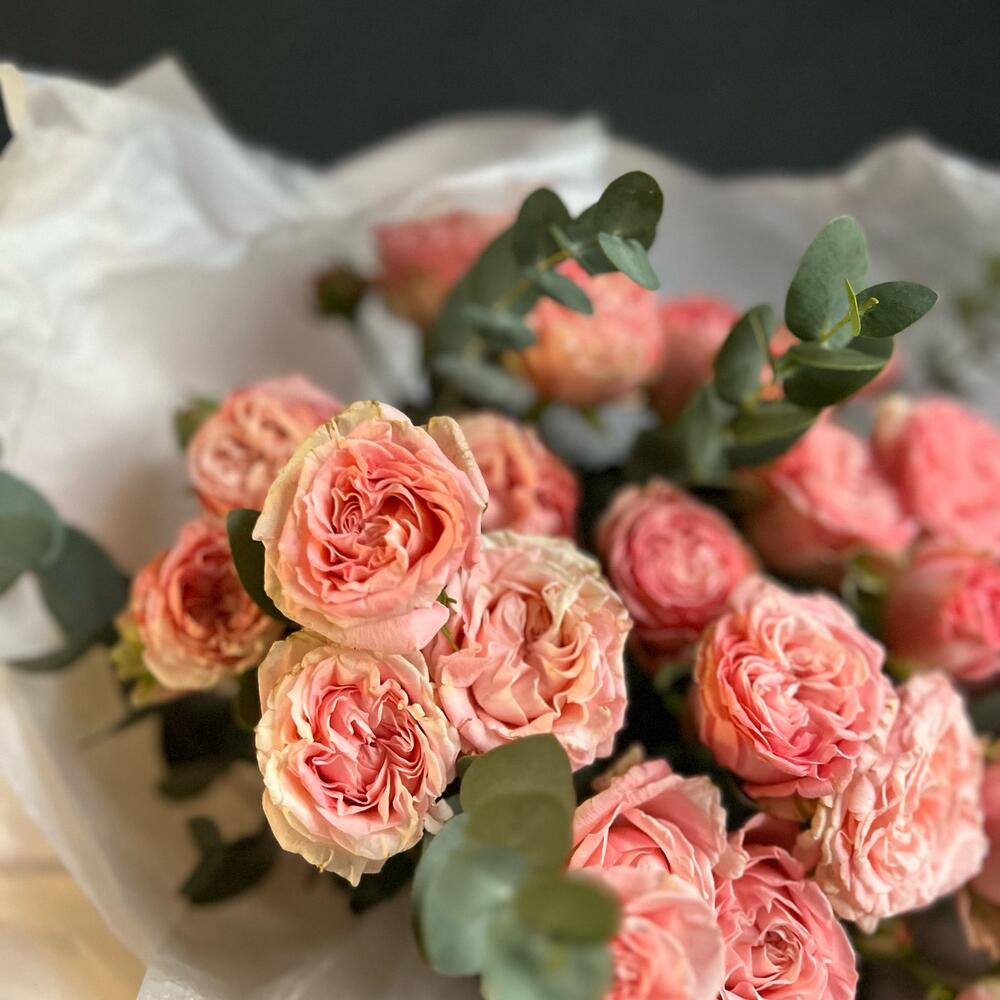 Букет из пионовидной розы и эвкалипт
