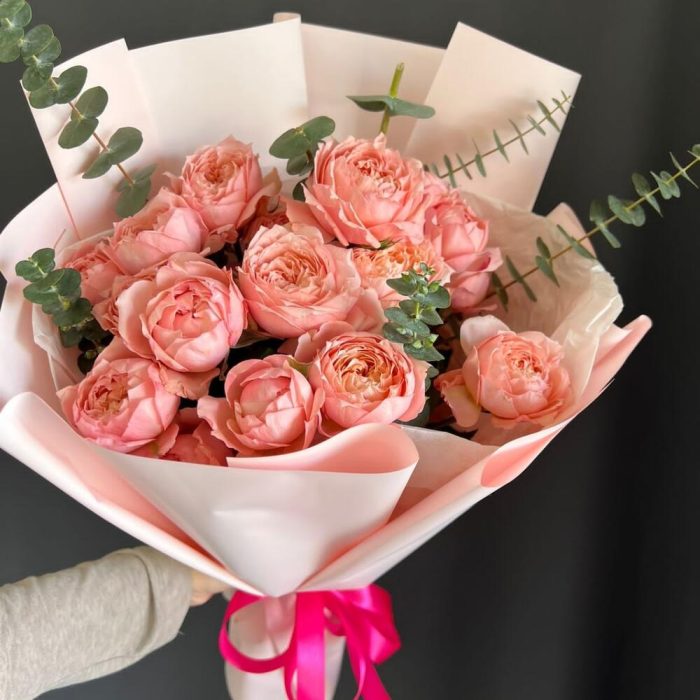 Большой букет с пион розой, лизиантусом, эвкалиптом