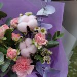 Букет из роза, диантуса и хлопка