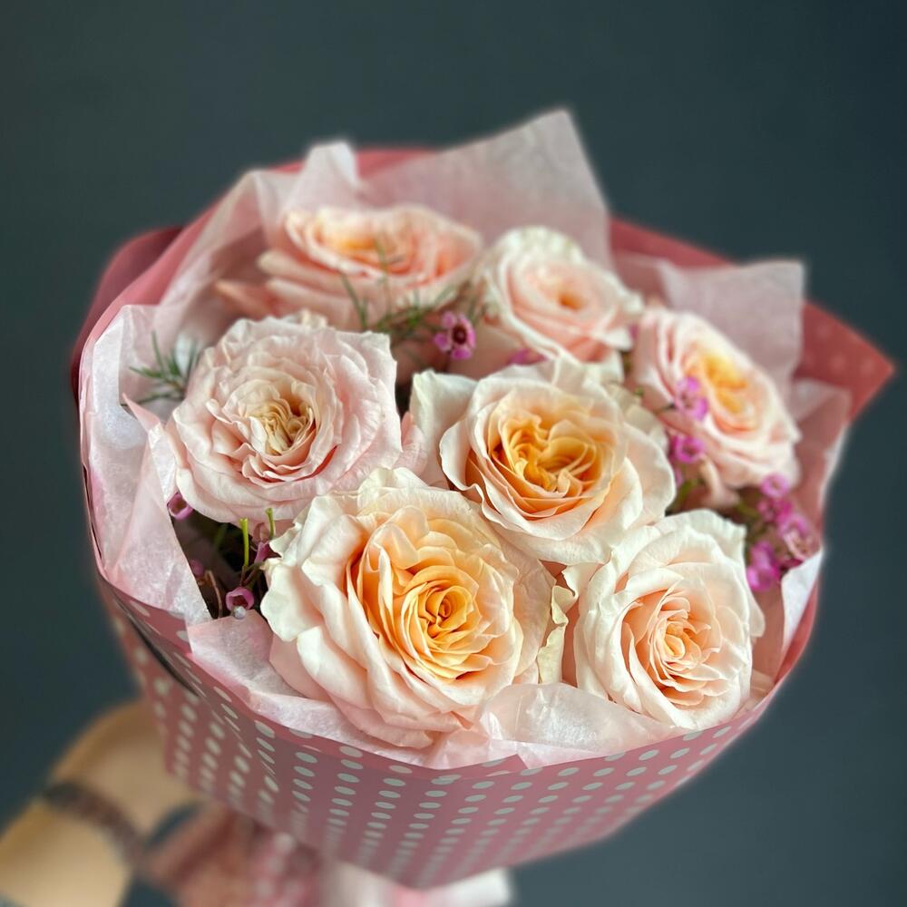 Букет с пионовидными розами и хамелациум