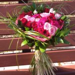 Букет с розами, альстромерией и кустовой розой «Рубин»