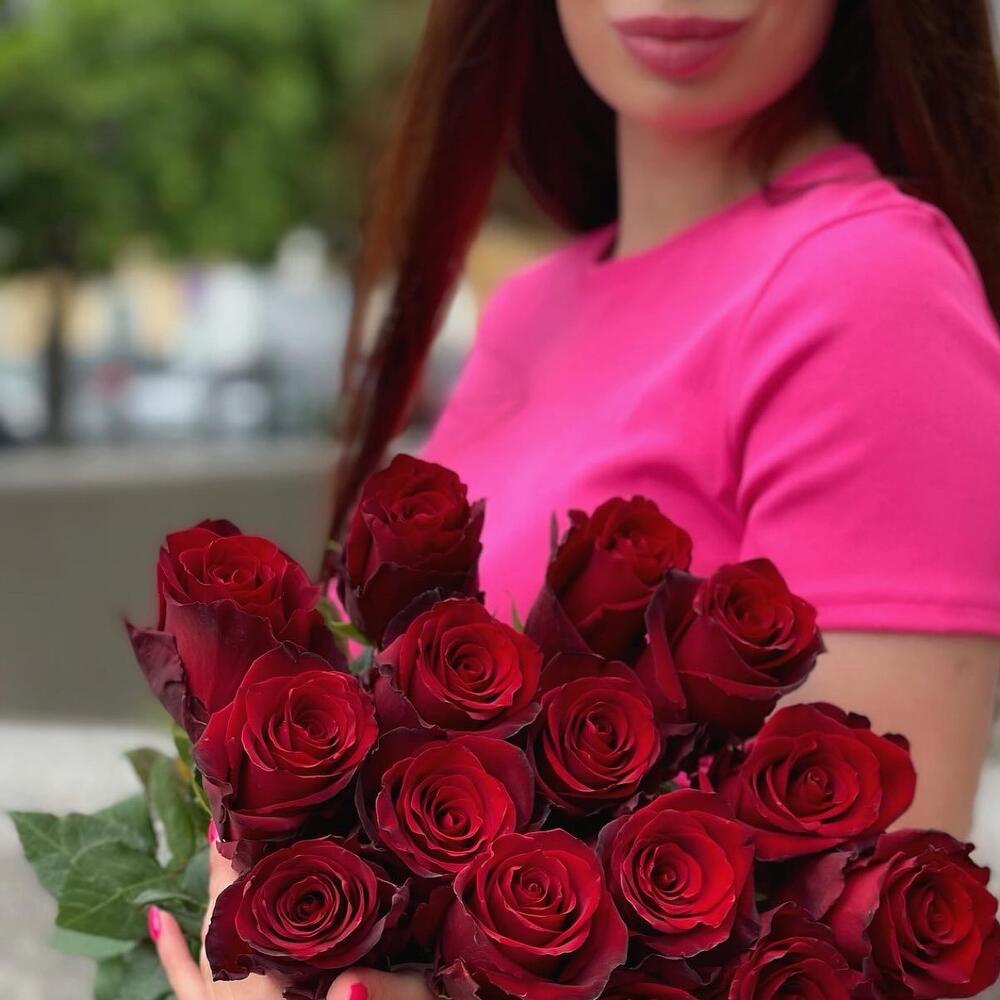роза эквадор 70 см красная – 15 шт.Лента атласная – 1 шт.