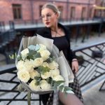 Букет «Эйфория» – это очень стильная вариация на тему моно из белых роз.Ароматный эвкалипт придает букету особый шарм, а нежное оформление из пленки подчеркивает чарующее белое свечение, исходящее от цветов.Букет аристократично прост и строг, однако подойдет для самого романтического жеста. Достаточно солидный, чтобы вручить на самый торжественный повод, например, юбилей.