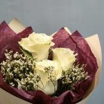 Лимониум – 2 шт.Тишью – 1 шт.Роза Эквадор белая – 3 шт.Пленка матовая – 1 шт.