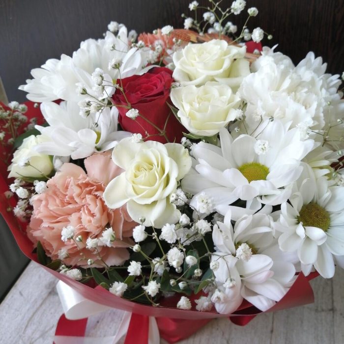 Категорий: Гвоздики, Гипсофила, Кустовые розы, Розы, Хризантемы