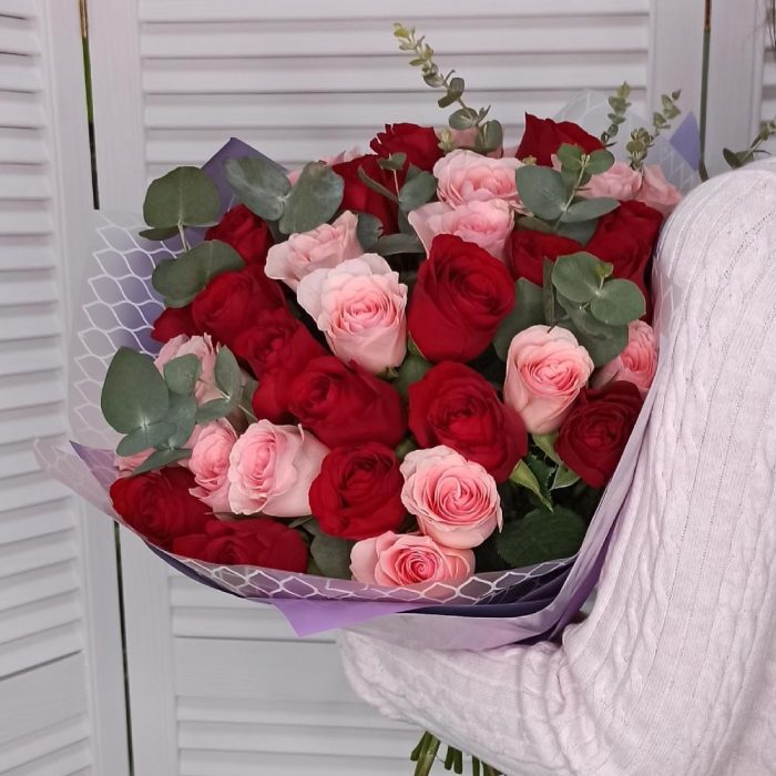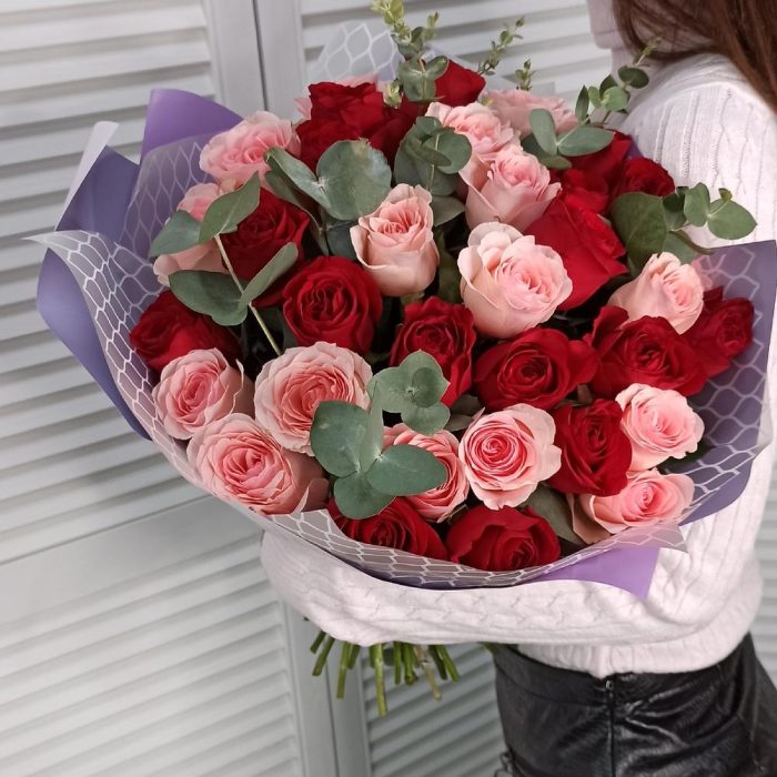 Роза Эквадор – 35 шт.Эвкалипт Baby Blue – 5 шт.Крафт упаковка – 3 шт.