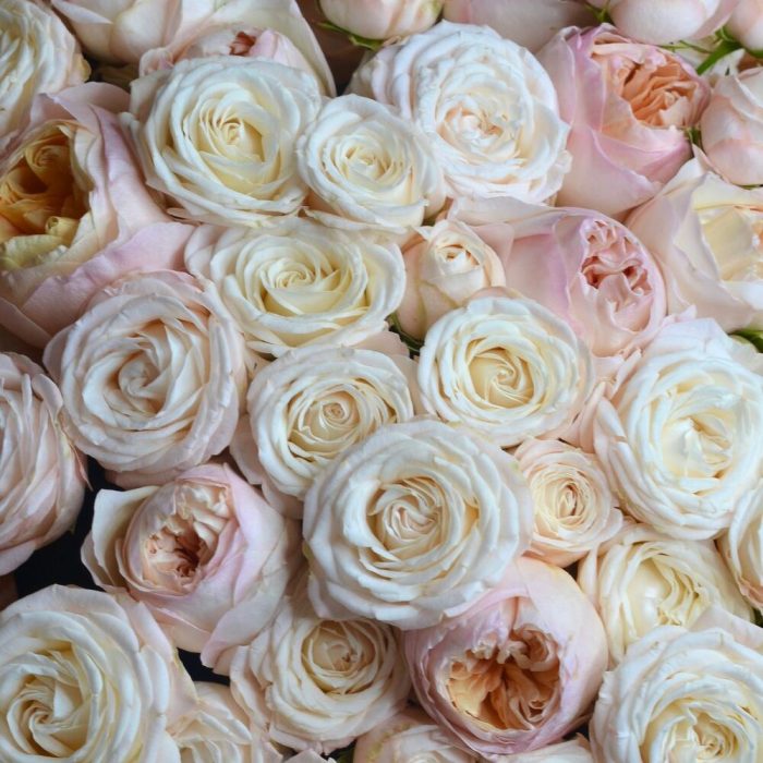 Пионовидная роза бомбастик – 10 шт.Пионовидная роза джульетта – 9 шт.