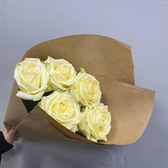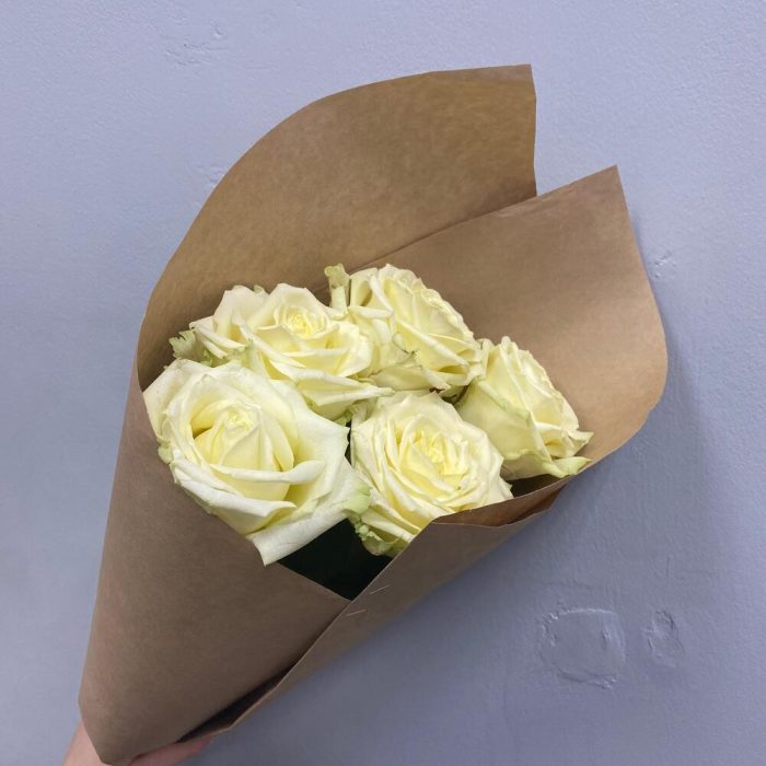 Роза – 5 шт.Крафт упаковка – 1 шт.Открыточка с вашими пожеланиями – 1 шт.