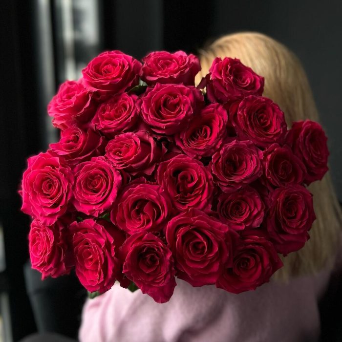 Монобукет из 25 ароматных малиновых роз