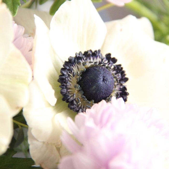 Гортензия – 1 шт.Анемон – 3 шт.Роза пионовидная – 3 шт.Твидия – 2 шт.Астра – 3 шт.Амми – 2 шт.Лизиантус – 2 шт.флебодиум – 2 шт.Эвкалипт – 3 шт.Упаковка – 2 шт.Лента атласная – 1 шт.