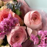 Нежный букет с пионлвидными розами и ранункулюсами