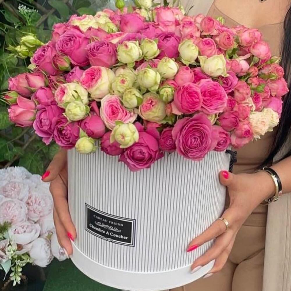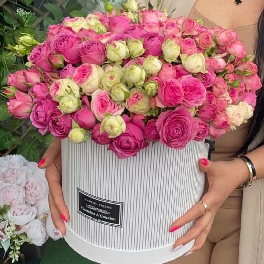 Пионовидная роза – 5 шт. Пионовидная кустовая роза – 9 шт.