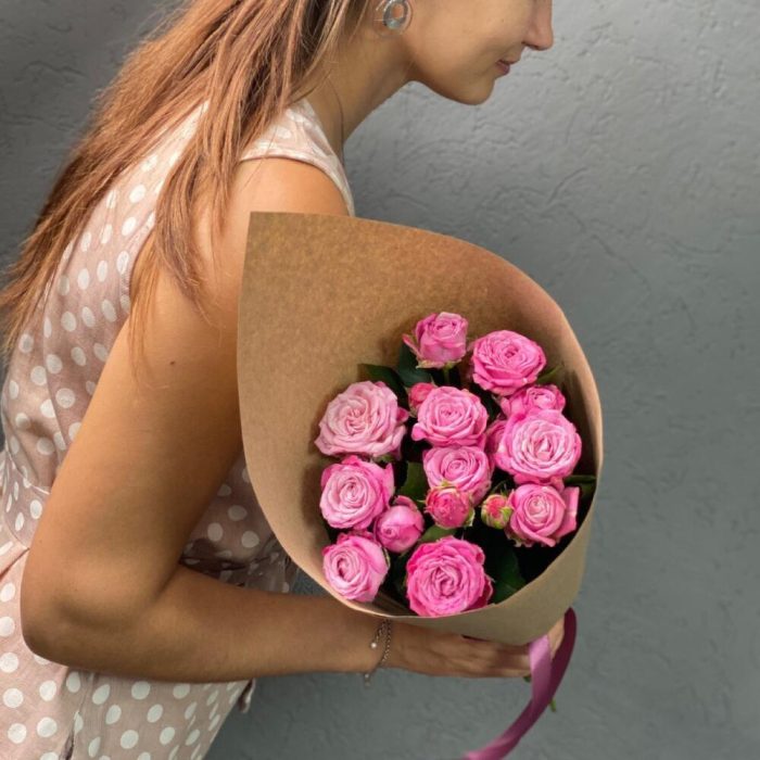 Букет из кустовых малиновых роз