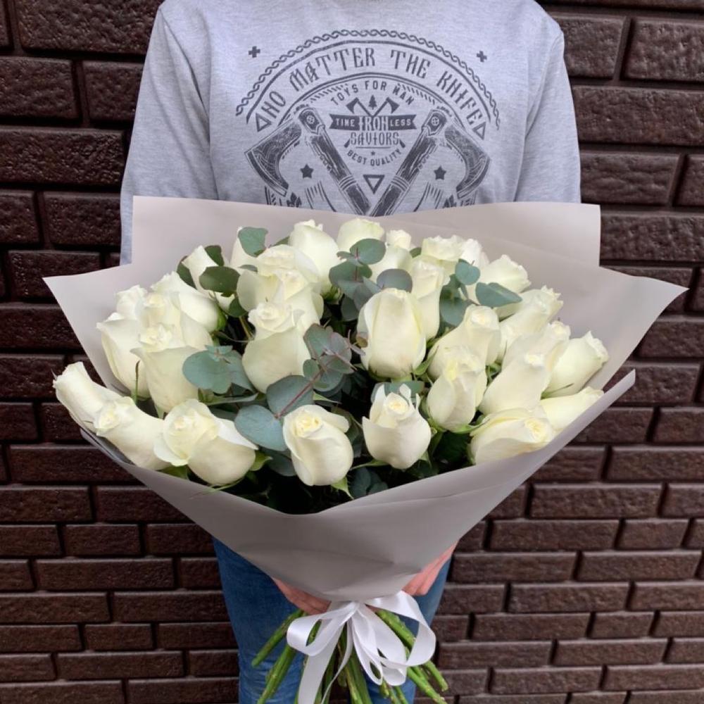 Роза Эквадор 70 см – 35 шт.Эвкалипт Микс – 10 шт.Упаковка дизайнерская – 2 шт.