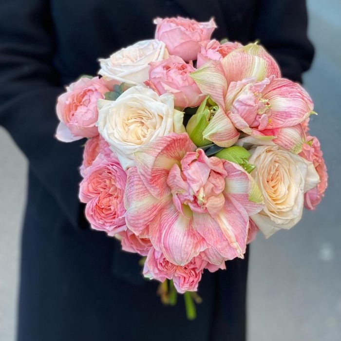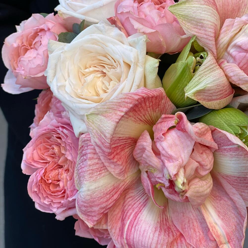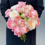 Альстромерии, Гвоздики, Кустовые розы, Лизиантусы, Розы, Хризантемы