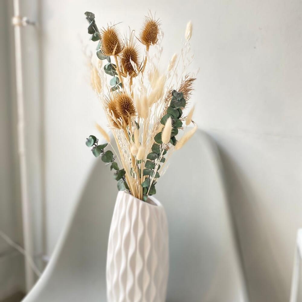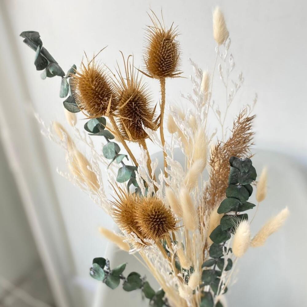 Эвкалипт стабилизированный – 3 шт.лимониум стабилизированный – 1 шт.Лагурус (сухоцвет) – 20 шт.ворсянка крашенная – 1 шт.
