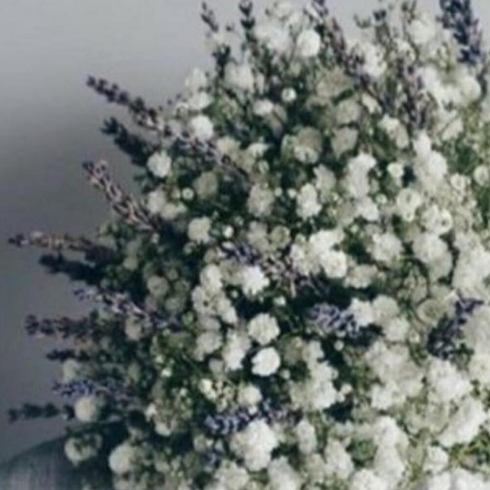 Гипсофила – 11 шт.Лаванда пучок – 1 шт.Лента атласная – 2 шт.