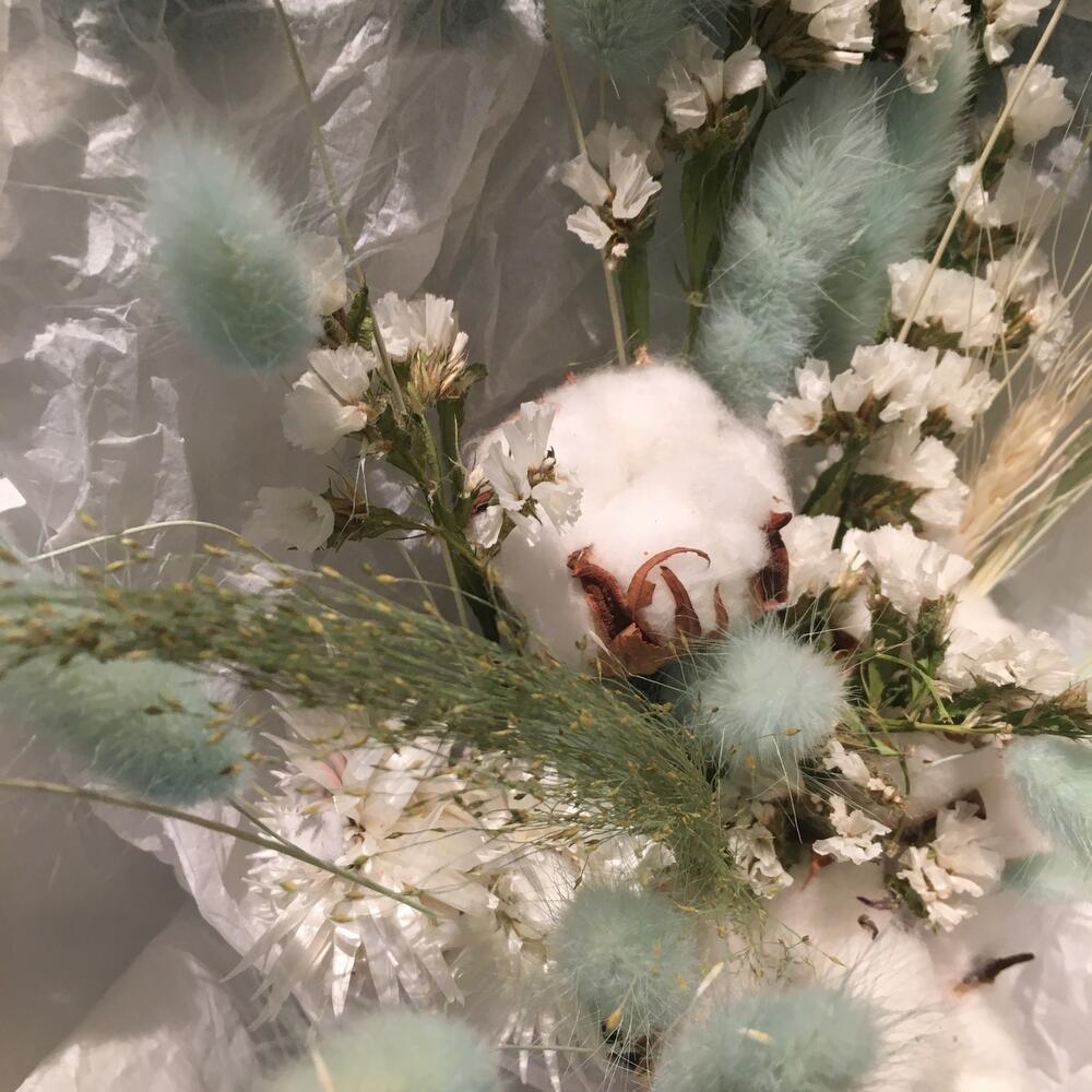 лагурус Baby Blue – 1 шт.Статица – 5 шт.Паникум – 1 шт.Хлопок – 4 шт.Упаковка дизайнерская – 1 шт.
